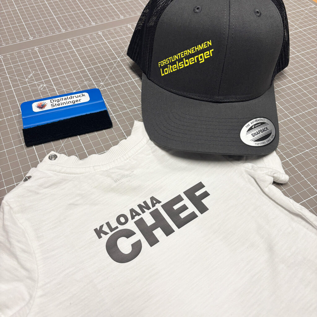 Caps, Shirts oder Jacken mit Firmenlogo – professionell bedruckt und perfekt für Messen, Events oder den Arbeitsalltag. Hochwertig, strapazierfähig und individuell nach Wunsch.